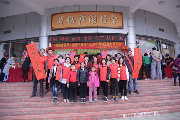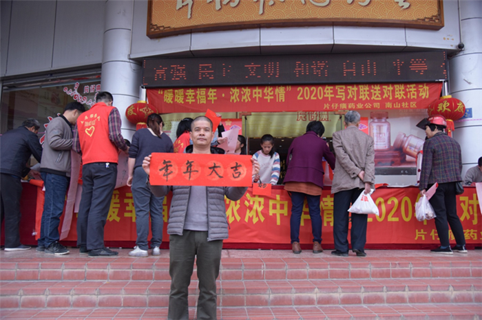 為豐富人民群眾的精神文化生活,2020年1月11日上午,片仔癀藥業公司攜手南山社區、公司志愿者團隊開展了“暖暖幸福年 濃濃中華情”送春聯活動,邀請公司職工、職工子女及社區書法愛好者現場寫春聯,為即將到來的2020年春節增添年味。