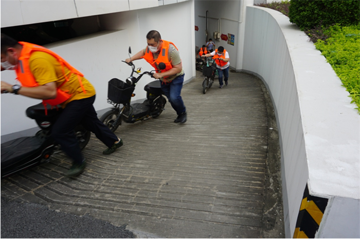 本次演練內容主要分為防洪土堤巡堤、搬運防洪沙袋封堵雨水、內澇圍擋雨水入車庫和轉移低洼處物資四個項目,模擬因受臺風天氣影響,連續暴雨洪水,九龍江水位上升,公司內部也發生內澇,地面大量雨水涌入地下一層車庫等為場景,公司接到市九龍江堤管處預報九龍江洪水水位超過警戒水位3米-3.5米和公司出現內澇汛情報告時,公司領導立即啟動抗洪搶險應急預案二級響應,組織應急救援搶險隊伍上南岸土堤巡查、搬運防洪沙袋堆積封堵、圍擋雨水入車庫、轉移低洼處物資等實戰實操防汛搶險應急演練。參演人員行動迅速、分工明確、動作協調、配合默契,正確及時有效地處置了險情。