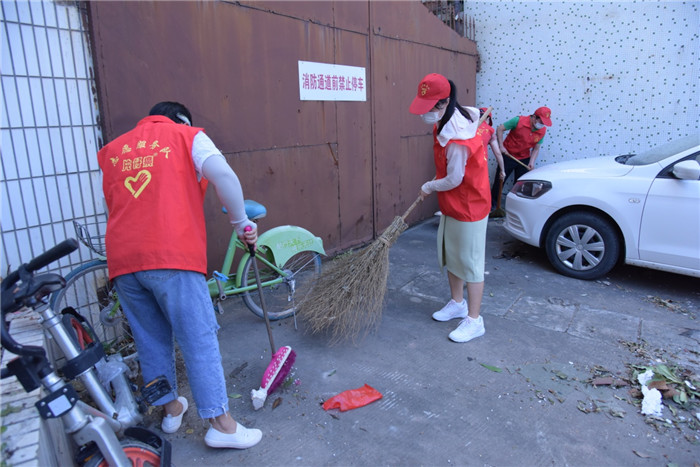 “那我們差不多開始行動吧?!蹦仙缴鐓^書記的話音剛落,志愿者們便拿起掃帚,熱火朝天地開啟了今天的“災后重建 助力創城”活動。此次志愿活動是對臺風過后一片狼藉的南山路28號宿舍進行清掃。由于這里不屬于環衛的工作范圍,臺風過后,各種傾倒的樹枝、落葉遍地都是,影響了居民們的正常生活。為全力以赴做好臺風災后恢復,力爭把臺風帶來的影響降到最低,積極推進漳州全國文明城市創建,解決居民們的煩惱,片仔癀藥業和南山社區共同合作,組織志愿者擼起袖子,拿起工具,掃去臟污,留下衛生和文明。天氣炎熱,也阻擋不了志愿者們的干事熱情。在眾人的共同努力下,曾經垃圾成堆、味道難聞的社區煥然一新,恰逢微風徐來,卷攜著空氣中的草木香,為滿頭大汗的志愿者送來清涼。