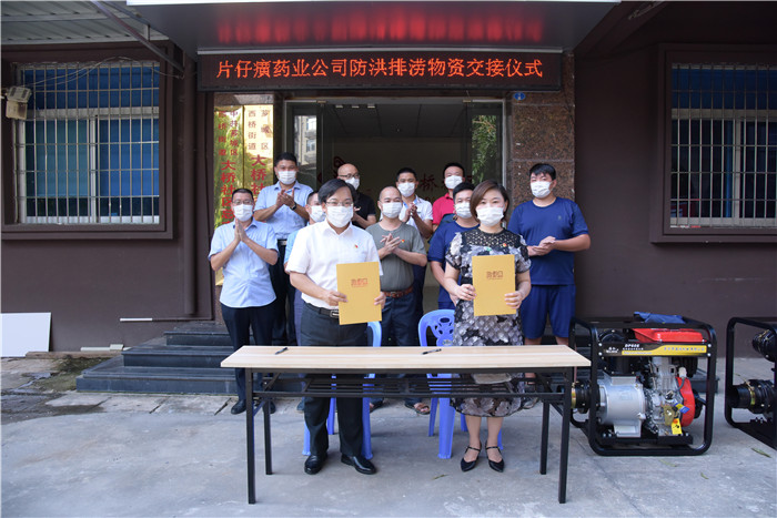 當前我市正處在防汛防臺風主汛期,公司處在九龍江畔,周邊有些居民社區、舊房和道路地勢處在低畦地帶,每逢大暴雨或臺風時,就出現嚴重積水,給居民生活生產帶來不便,防汛形勢較為嚴峻,為充分彰顯國企擔當和對社會責任的履行,漳州片仔癀藥業股份有限公司通過漳州市高新區應急管理局向九湖鎮大橋社區居委會贊助防汛排澇抽水泵2臺,及時提供防汛排澇防控應急設備的支持,時刻與地方政府建立防汛抗洪聯防聯動聯控機制,共同構筑防災減災救災的人民防線,全力保障人民群眾生命財產安全。