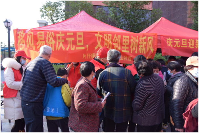 在社區游園會各環節中,片仔癀藥業公司以“移風易俗慶元旦,文明鄰里樹新風”為主題作為新時代文明實踐活動,志愿者們向小區居民宣傳弘揚傳統美德,倡導移風易俗,擯除陳規陋習,樹立文明鄰里風,共建和諧小區。并與社區工作人員緊密配合維護活動現場的秩序,并分發護手霜等禮品為冬日帶來暖意。