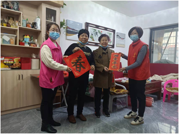 巾幗志愿者和新時代文明實踐站志愿者一同為小區內行動不便的老人也送上新春的祝福。